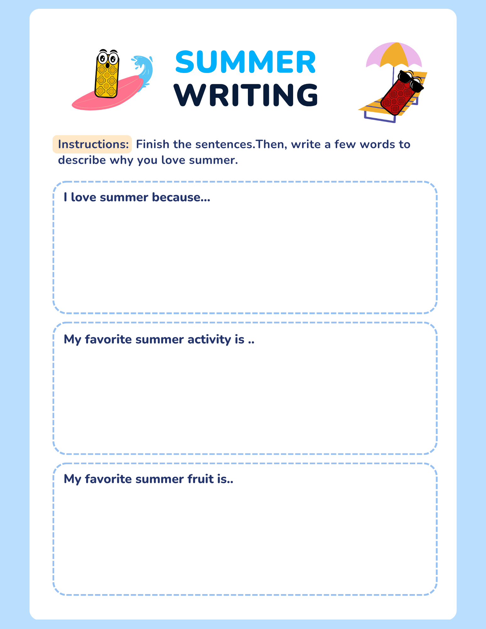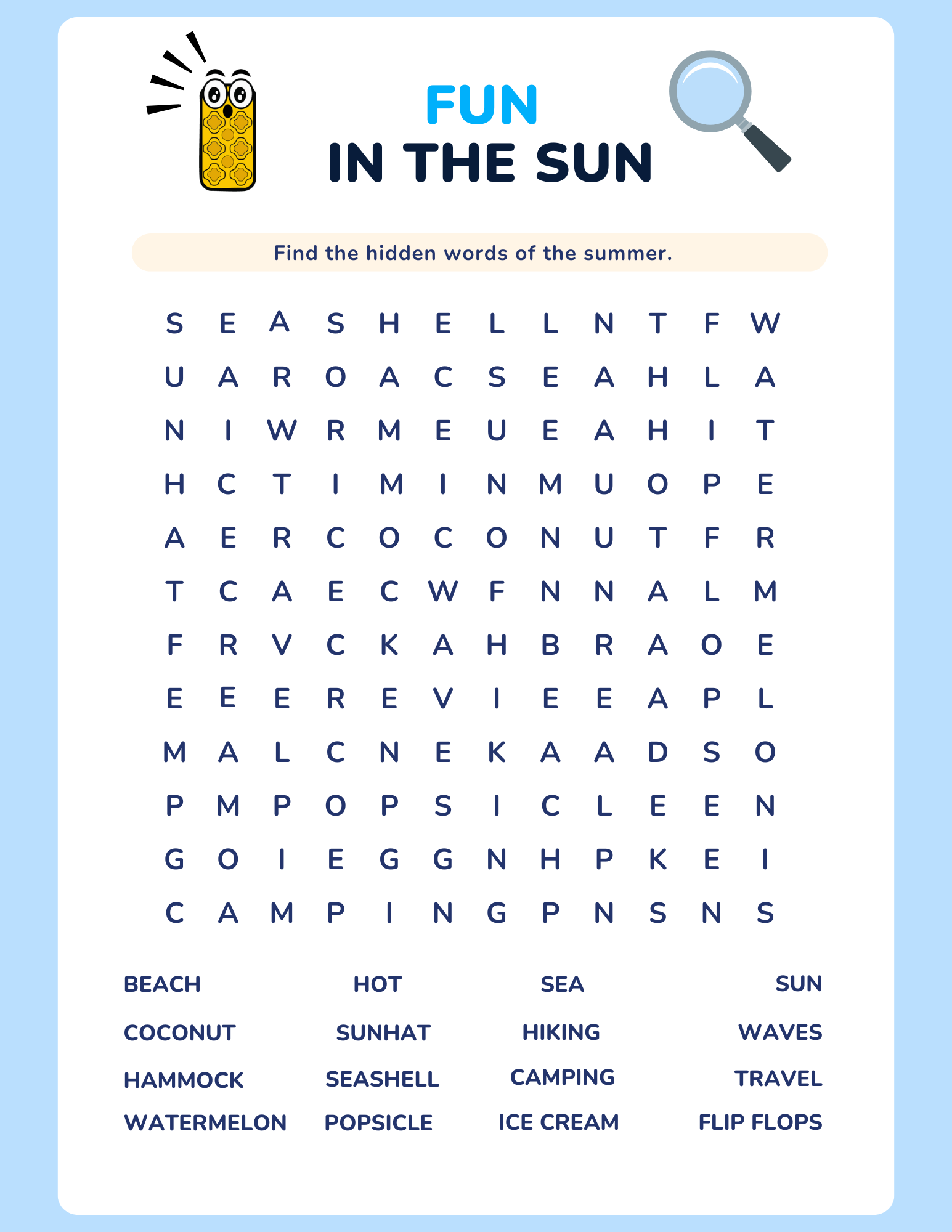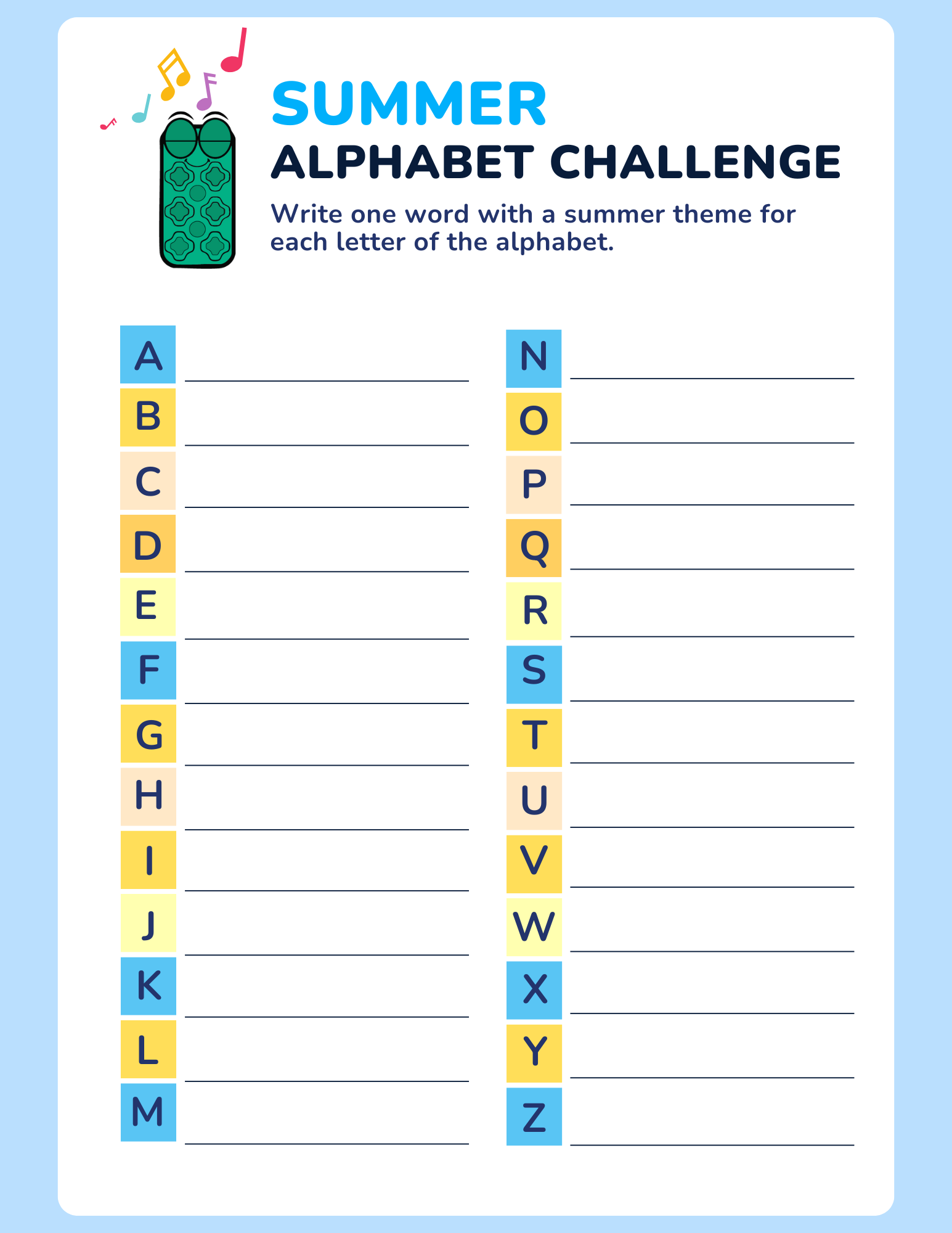 This printable activity book includes 16 pages of interactive, summer-themed fun: