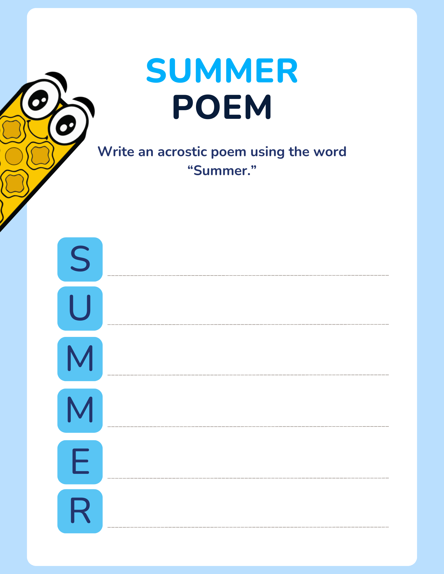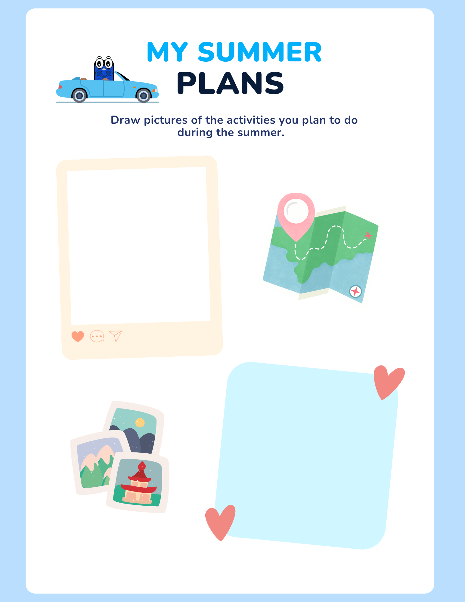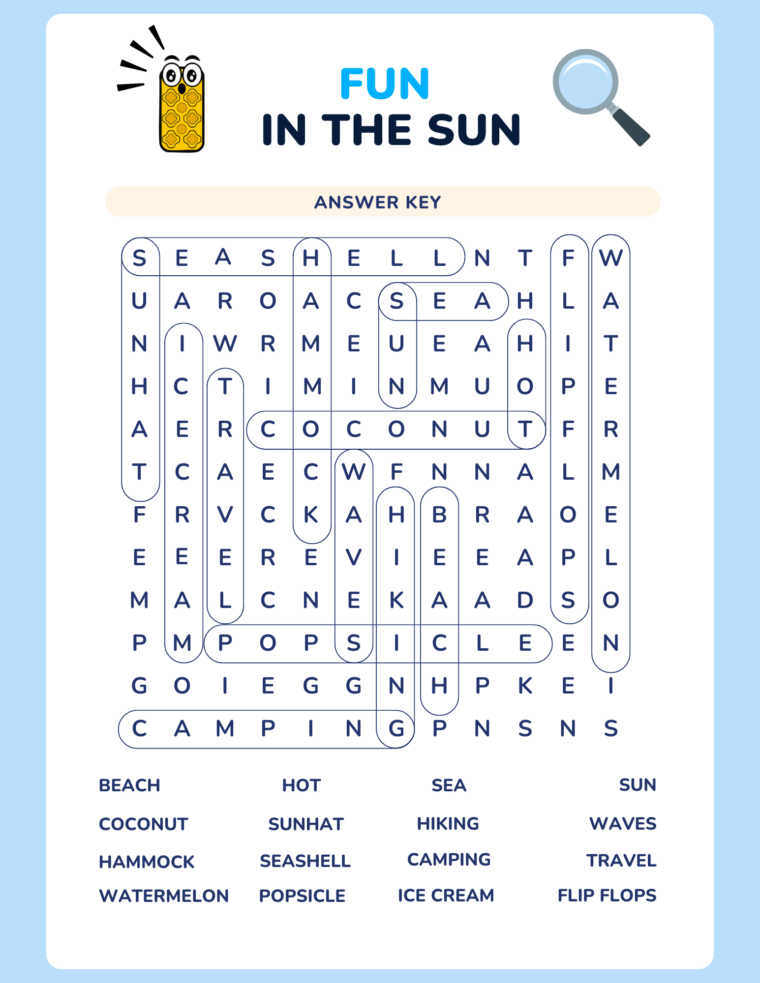 This printable activity book includes 16 pages of interactive, summer-themed fun: