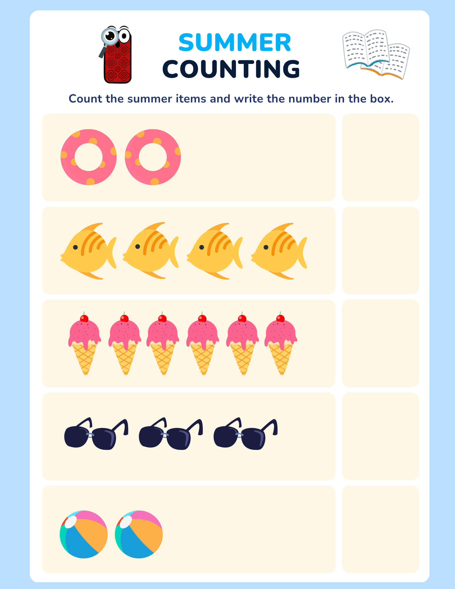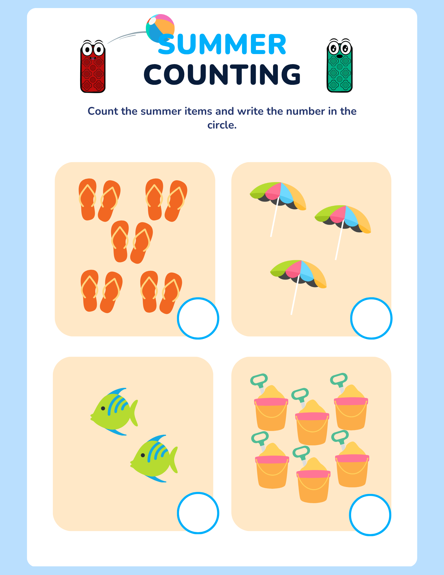 Summer Counting Pages – Practice early math with colorful objects