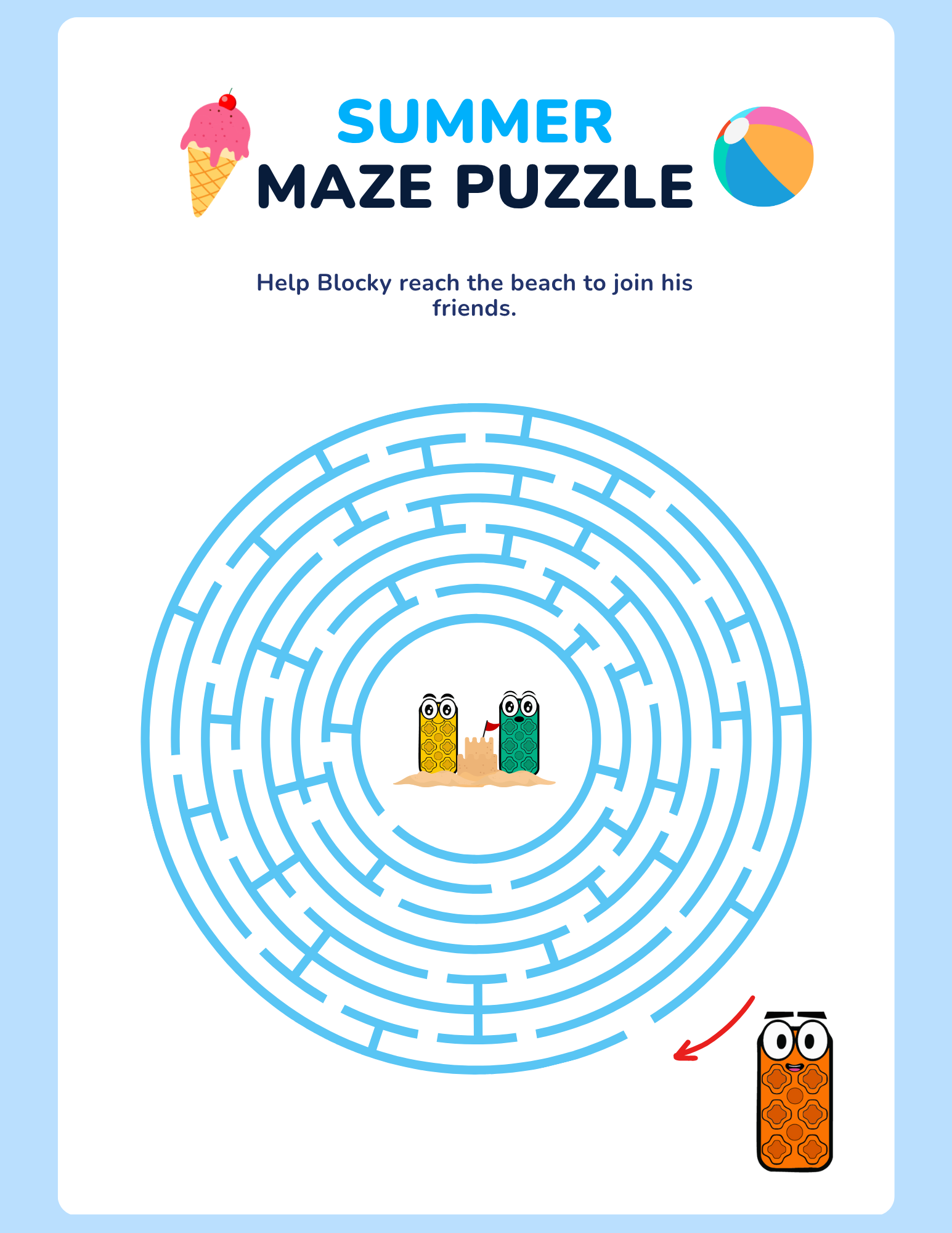 Maze Puzzle – Help Blocky find the way to the beach!