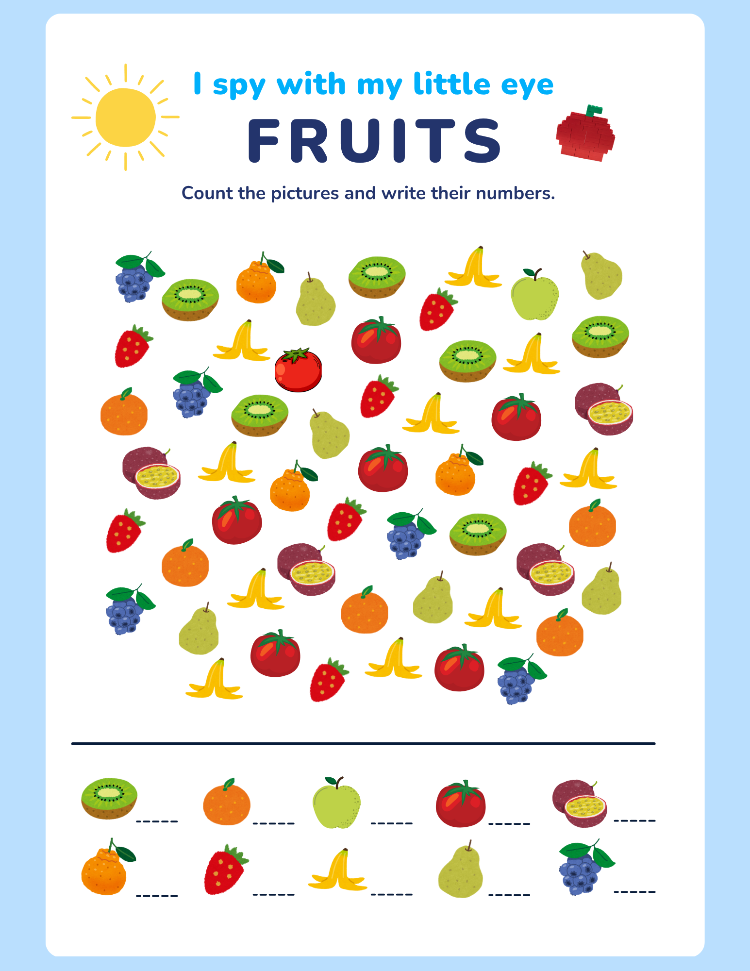 I Spy with My Little Eye: Fruits – Count and track fruit in a busy scene