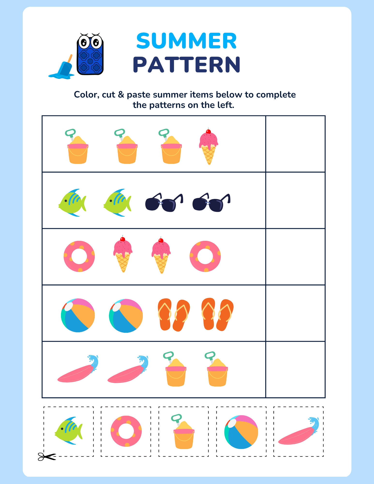 Pattern Recognition + Cut & Paste – Build logic and fine motor skills