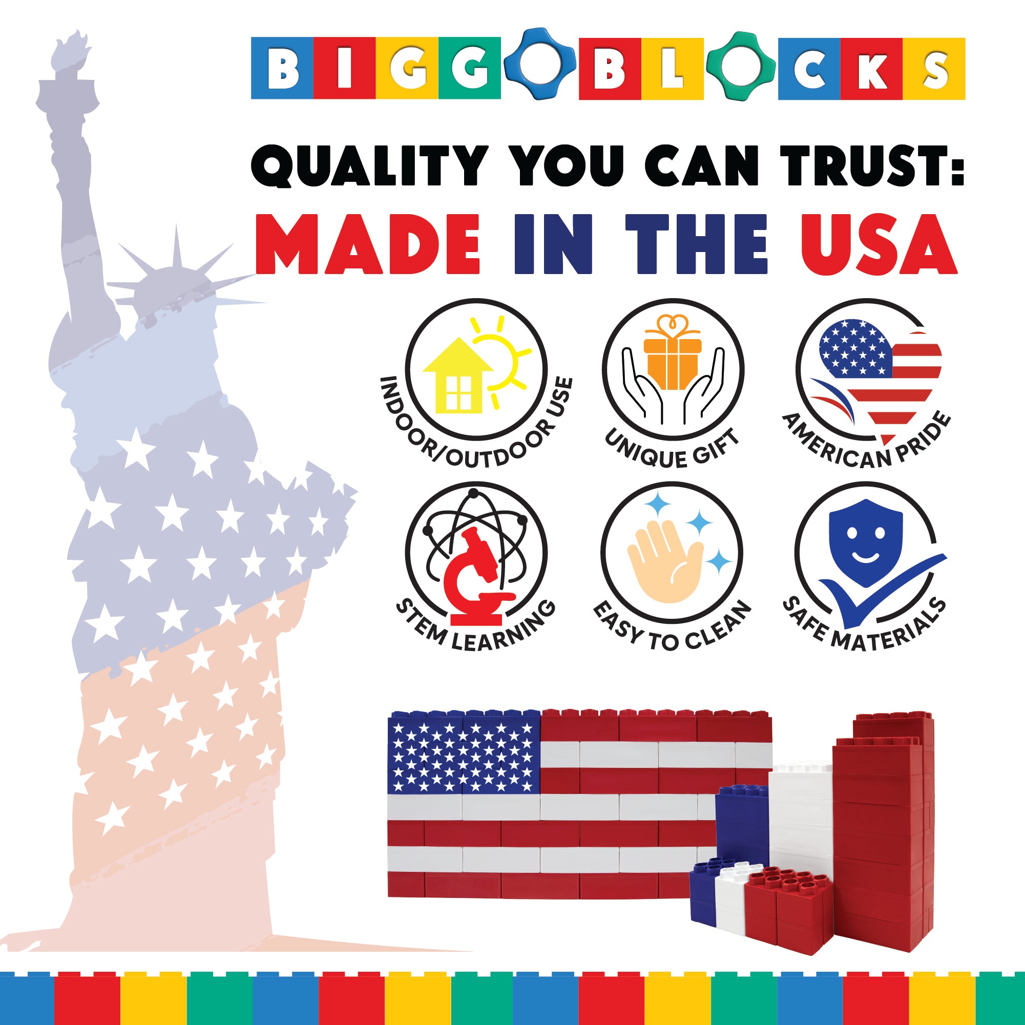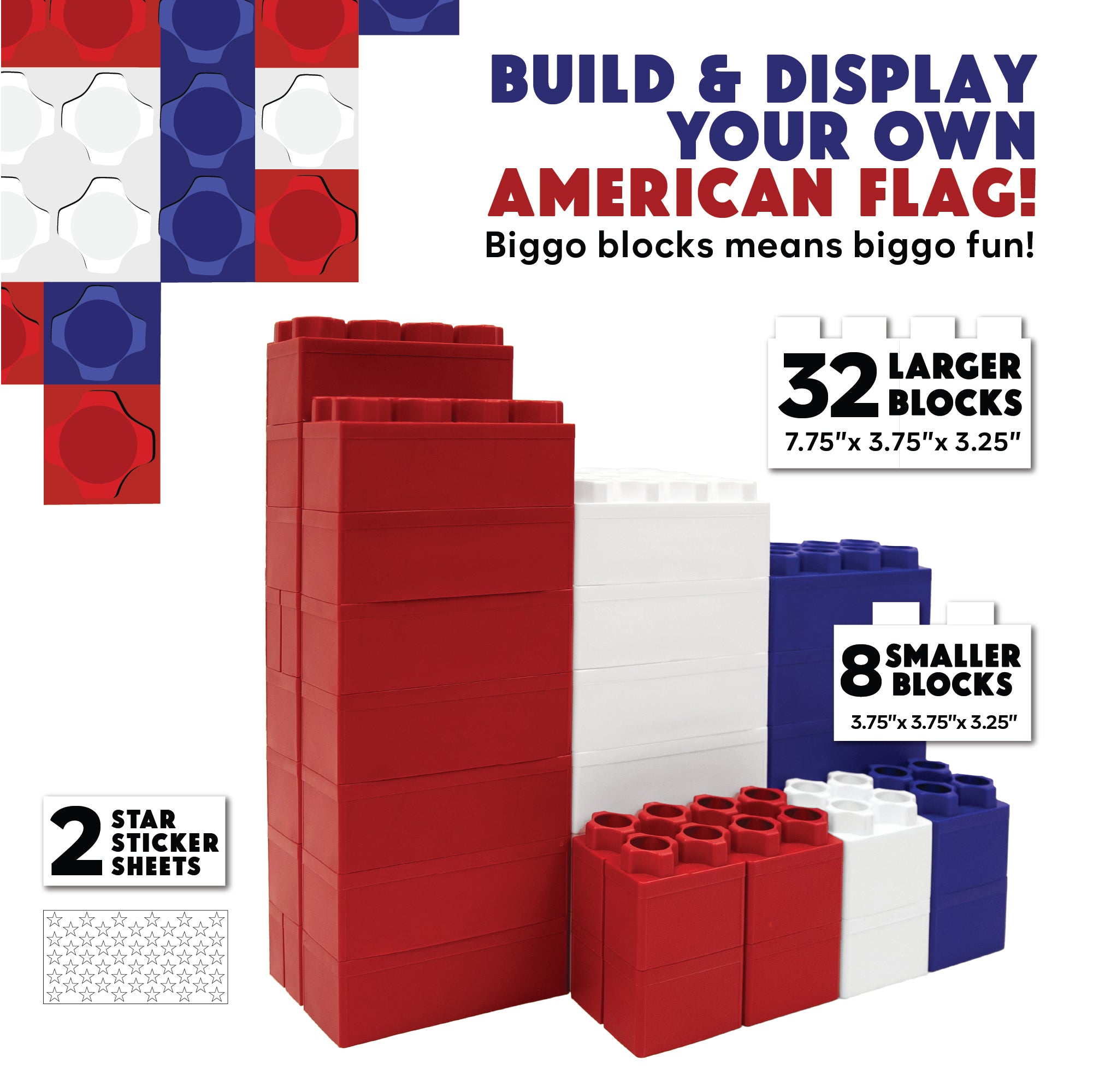 · An Engaging Way to Celebrate America: Oversized blocks stack smoothly and intuitively, turning the build into a fun, rewarding experience that sparks pride and patriotic spirit for kids and adults alike.