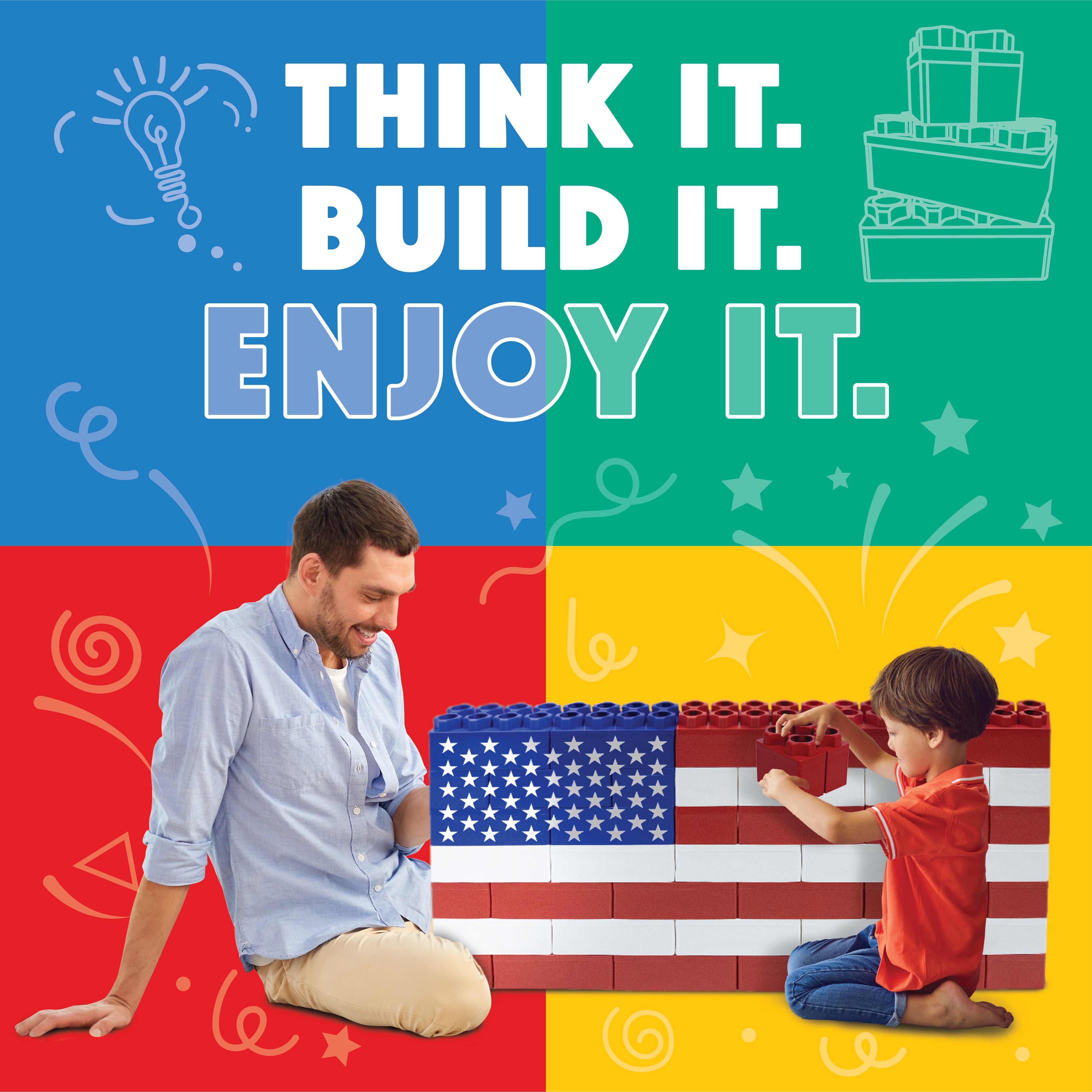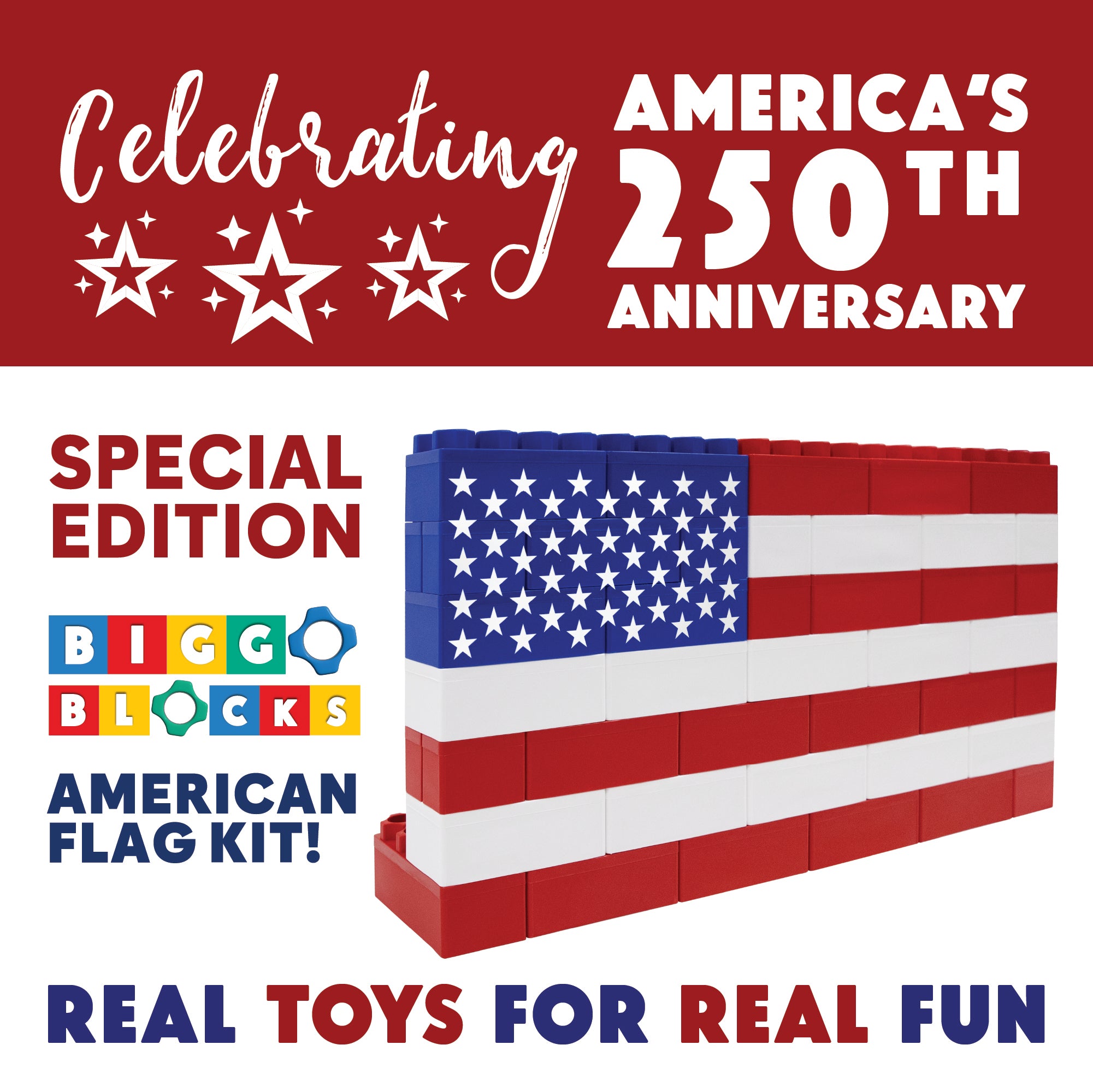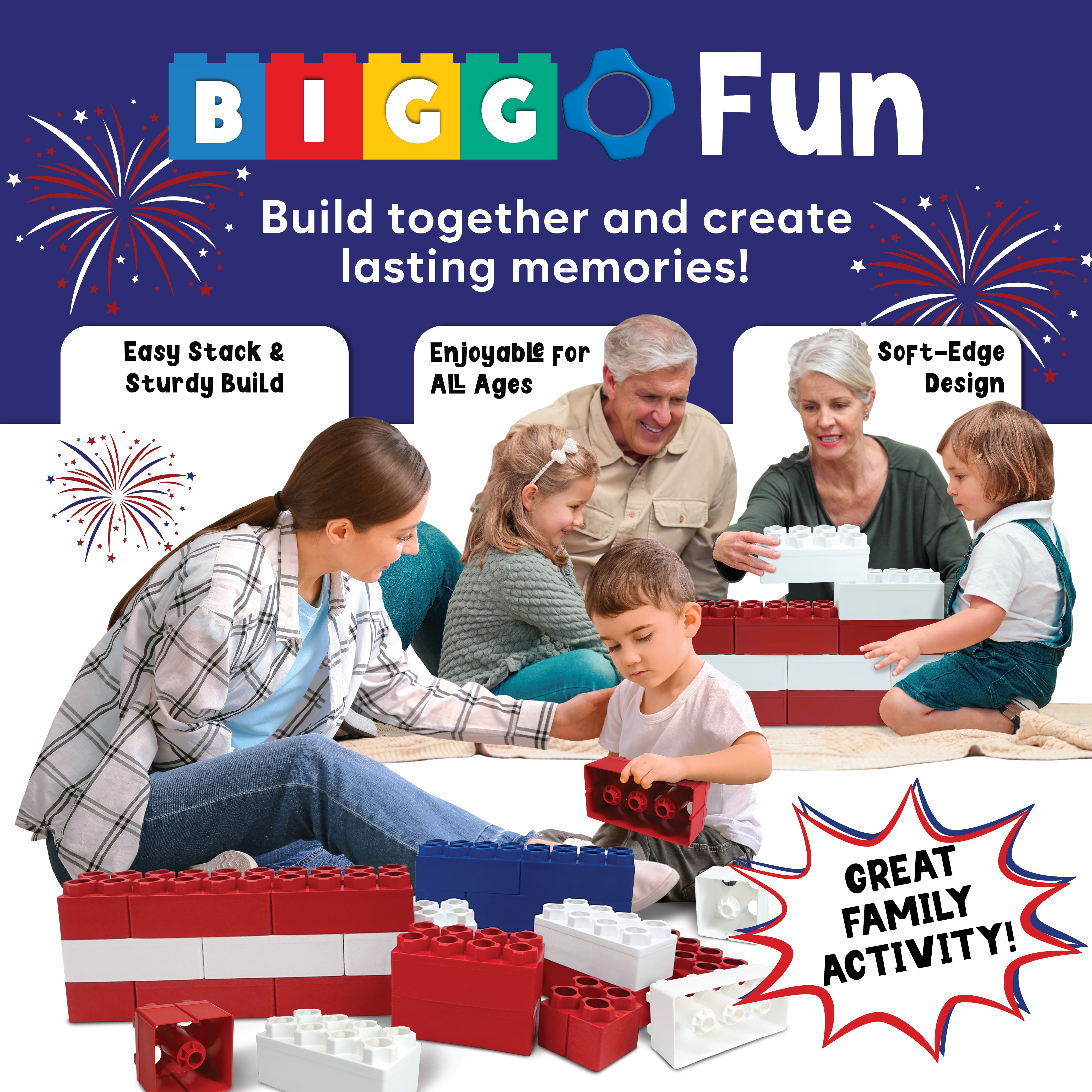 · A Flag You Get to Build: Not just décor—this American flag comes together through hands-on play using Biggo’s signature jumbo blocks, making the build itself part of the celebration.
