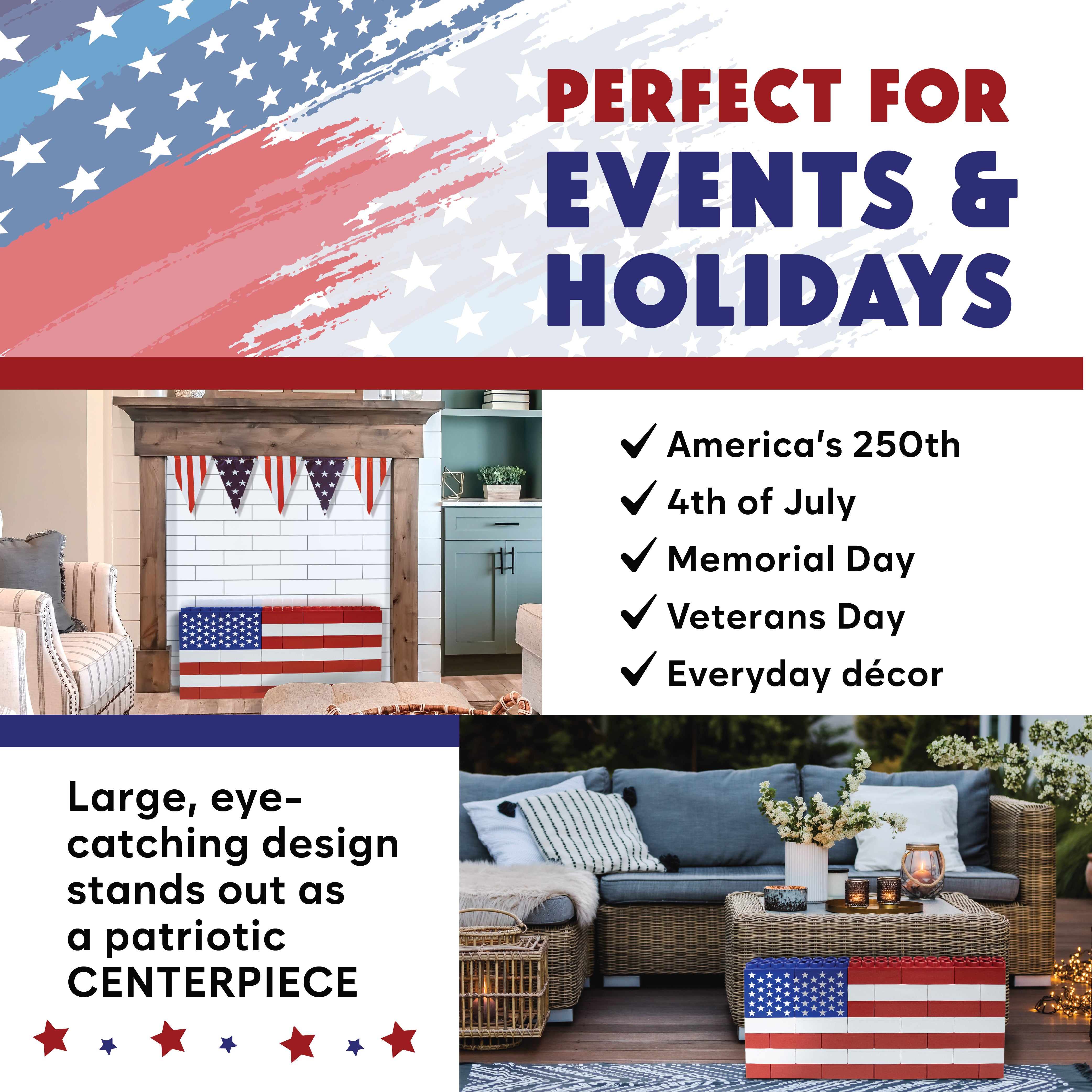 From backyard barbecues and holiday parties to Memorial Day, Independence Day, Veterans Day, or the upcoming 250th anniversary celebrations, this kit is more than just a build—it’s a centerpiece. The large, colorful blocks make assembly engaging for kids and adults alike, turning it into a fun family project that doubles as a striking decoration.